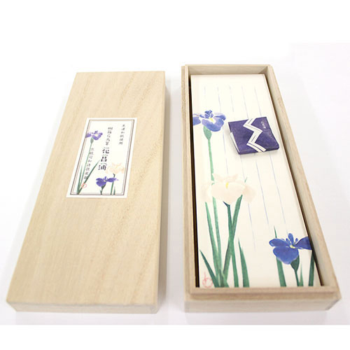 沓掛ろっか 桐箱花鳥箋 花菖蒲 (RKI-007) 包み香入りの美濃和紙一筆箋 和詩倶楽部 気軽なひとことを添えるミニ便箋 文香入...