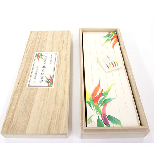 沓掛ろっか 桐箱花鳥箋 五色唐辛子 (RKI-006) 包み香入りの美濃和紙一筆箋 和詩倶楽部 気軽なひとことを添えるミニ便箋 文...