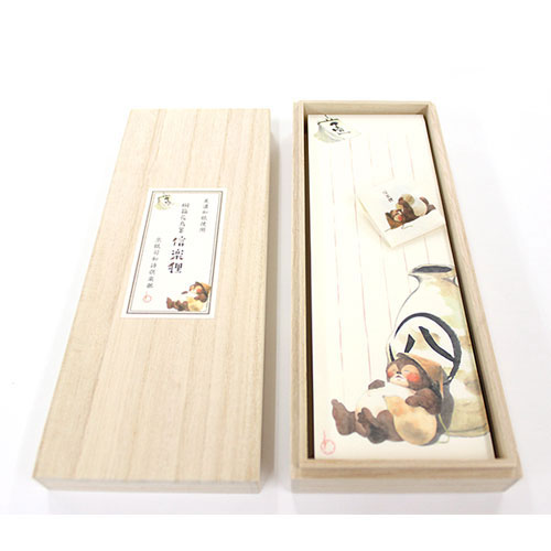 沓掛ろっか 桐箱花鳥箋 信楽狸 (RKI-015) 包み香入りの美濃和紙一筆箋 和詩倶楽部 気軽なひとことを添えるミニ便箋 文香入...