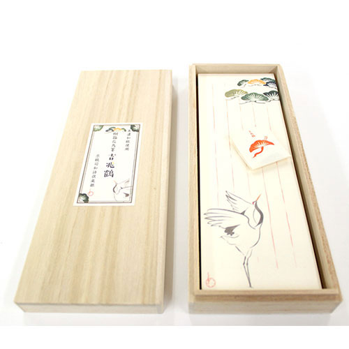 沓掛ろっか 桐箱花鳥箋 吉兆鶴 (RKI-013) 包み香入りの美濃和紙一筆箋 和詩倶楽部 気軽なひとことを添えるミニ便箋 文香入...
