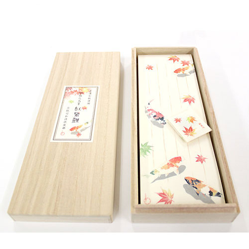 沓掛ろっか 桐箱花鳥箋 紅紫鯉 (RKI-011) 包み香入りの美濃和紙一筆箋 和詩倶楽部 気軽なひとことを添えるミニ便箋 文香入...