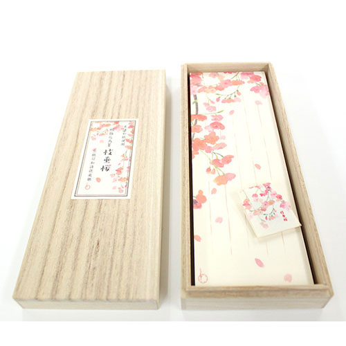 沓掛ろっか 桐箱花鳥箋 枝垂桜 (RKI-001) 包み香入りの美濃和紙一筆箋 和詩倶楽部 気軽なひとことを添えるミニ便箋 文香入...