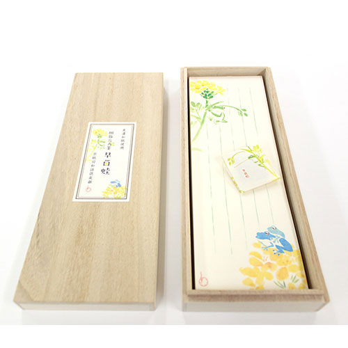 沓掛ろっか 桐箱花鳥箋 早苗蛙 (RKI-009) 包み香入りの美濃和紙一筆箋 和詩倶楽部 気軽なひとことを添えるミニ便箋 文香入...