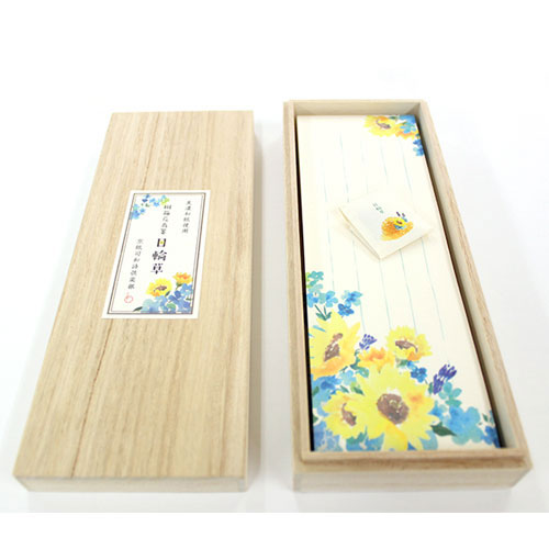 沓掛ろっか 桐箱花鳥箋 日輪草 (RKI-002) 包み香入りの美濃和紙一筆箋 和詩倶楽部 気軽なひとことを添えるミニ便箋 文香入...