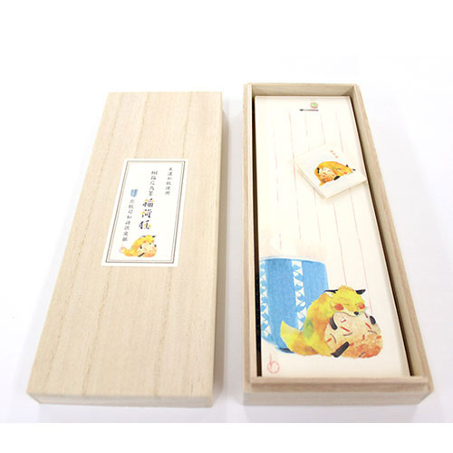 沓掛ろっか 桐箱花鳥箋 稲荷狐 (RKI-014) 包み香入りの美濃和紙一筆箋 和詩倶楽部 気軽なひとことを添えるミニ便箋 文香入...