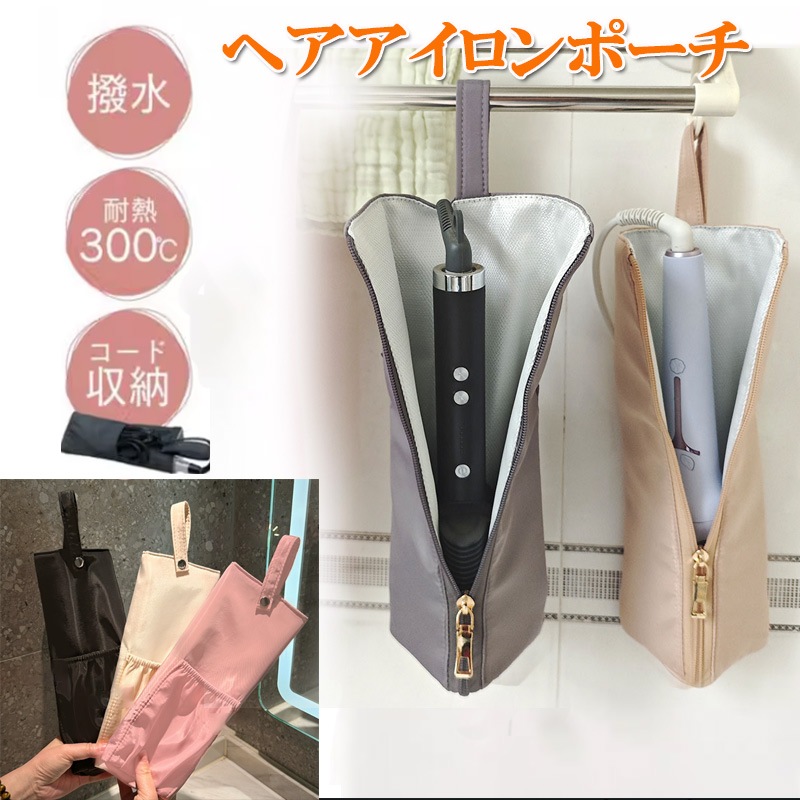 熱いままでも収納OK ヘアアイロンケース ヘアアイロン 収納 ポーチ ヘアアイロン ケース ヘアアイロンポーチ 耐熱 吊り下げ 引...
