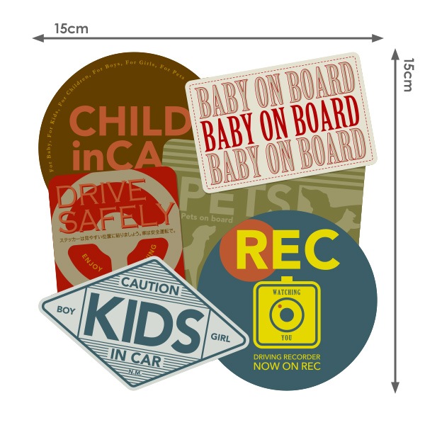コラージュデザイン 複数ステッカー風【マルチメッセージ】ダイカット車マグネットステッカー【ゆうパケット配送選択可能】