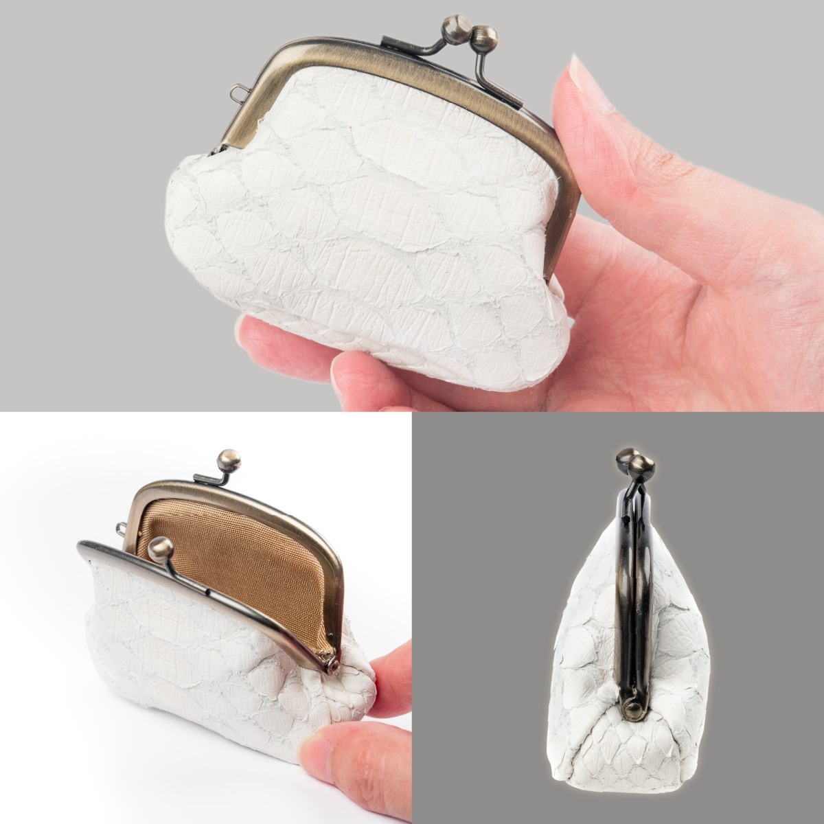 金運丸呑み♪ 白蛇金運がま口財布 ≫本蛇革を使用した開運財布