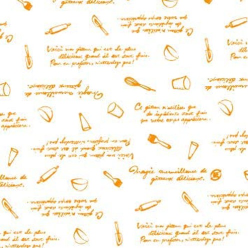 片面シリコンパーチ135ミリ角 道具柄オレンジ 500枚【ラッピング スイーツ用包装紙 ガトーシー プリン掛け紙】