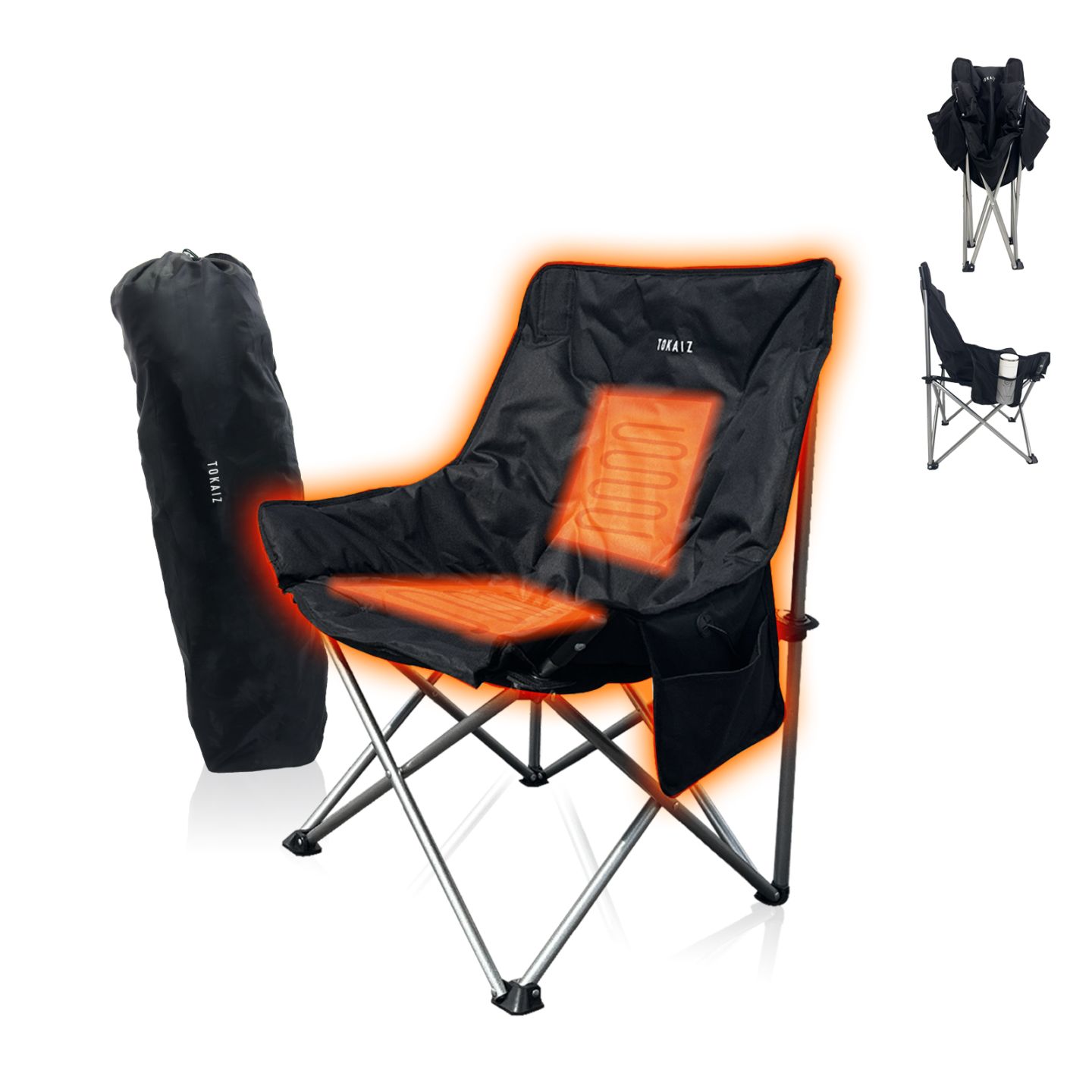 アウトドアチェア ヒーター付 折りたたみ 収納バッグ付 コンパクト 温熱 あったか 暖かい 椅子 チェア 1人掛け ひじ掛け 肘掛...