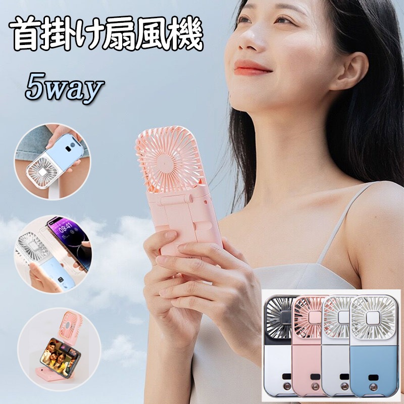 【2024最新型】ネック&ハンディファン 扇風機 LED Display 首掛け扇風機 スマホスタンド 携帯扇風機 ストラップ ...