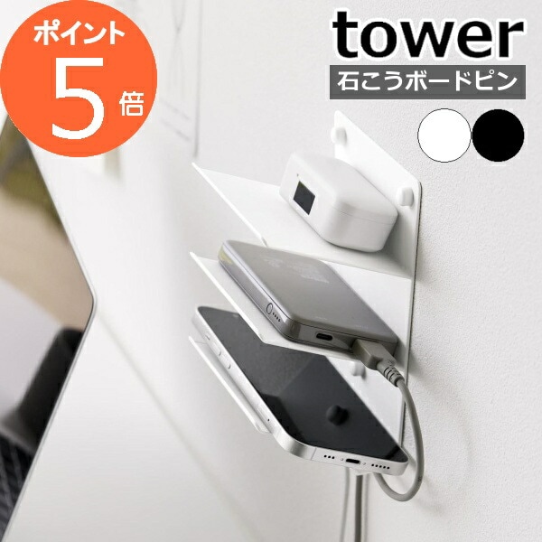 [ ウォールモバイル充電&収納ラック タワー 3段 石こうボード壁対応 ]山崎実業 tower 壁面収納 タブレットスタンド スマ...