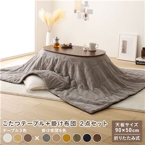 楕円形 折りたたみ こたつテーブル 2点セット 約幅90cm ナチュラル×グレー掛け布団 完成品送料無料
