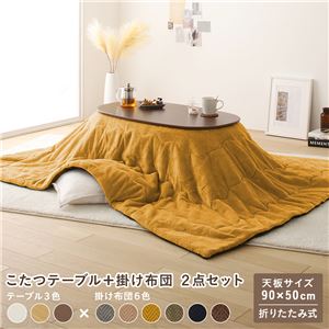 楕円形 折りたたみ こたつテーブル 2点セット 約幅90cm ナチュラル×イエロー掛け布団 完成品送料無料