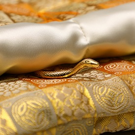 金運を授かりたい方へ、 神授『荒波々幾龍神財布』ゴールド龍燐ラウンドファスナー ≫金吾龍神社で祈祷済み