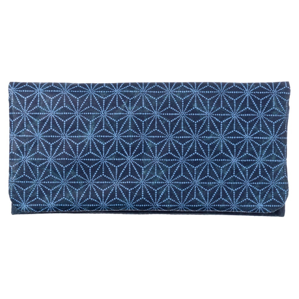 SIWA|紙和 長財布 麻の葉 ダークブルー×紺青 和紋型染めの破れにくい紙・ナオロン製財布 山梨県の工芸品 Durable pa...