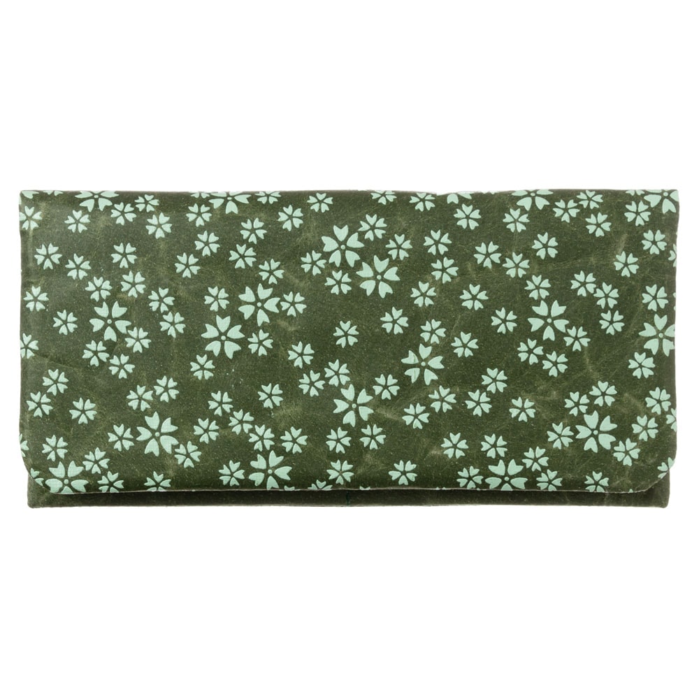 SIWA|紙和 長財布 小桜 ダークグリーン×浅緑 和紋型染めの破れにくい紙・ナオロン製財布 山梨県の工芸品 Durable pa...