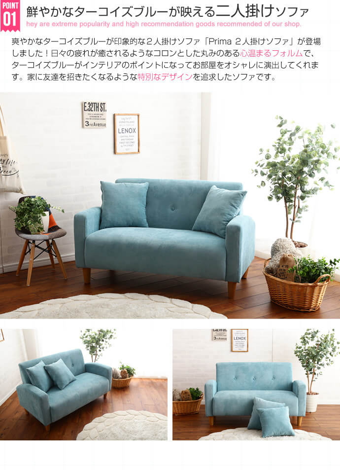Prima 2人掛けソファ 118007_TUR_B ターコイズブルー
