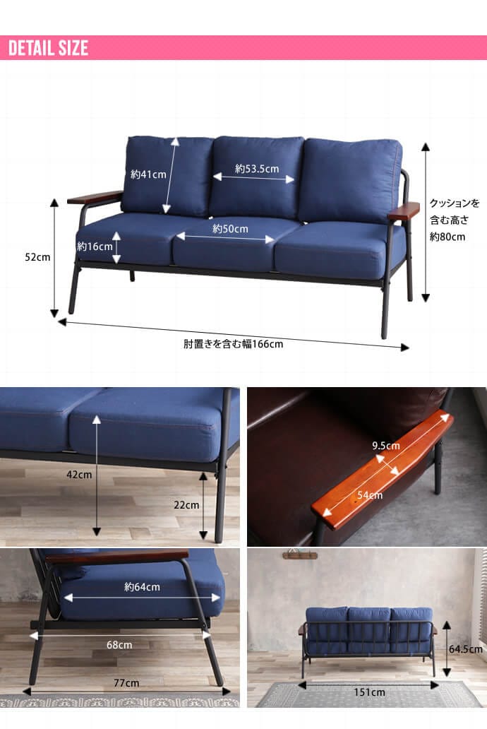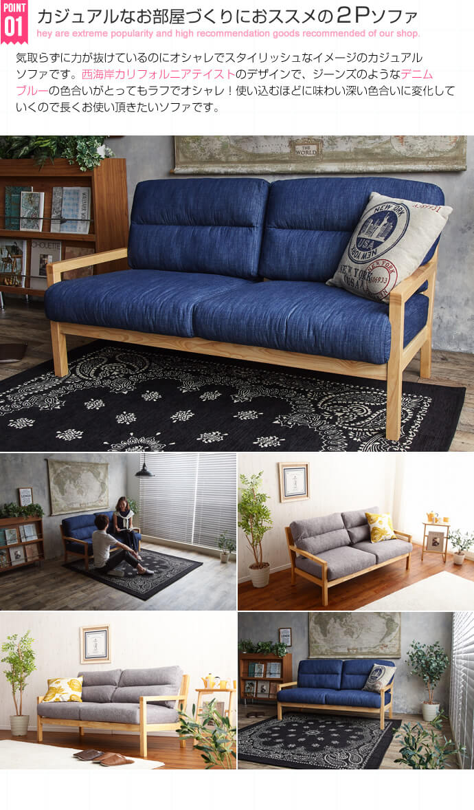 Life ウォッシャブルデニム生地 二人掛けソファ 118003_DNM_BL デニムブルー