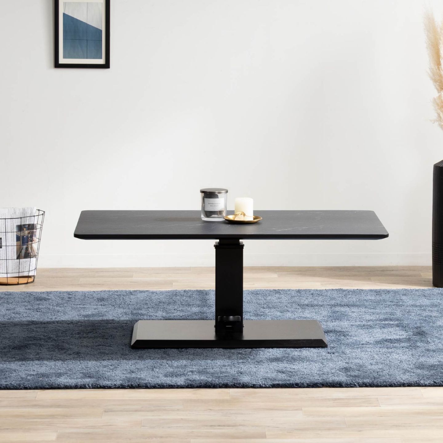 [幅110] 昇降テーブル リビングテーブル ローテーブル センターテーブル 昇降式 ホワイト ブラック 大理石調