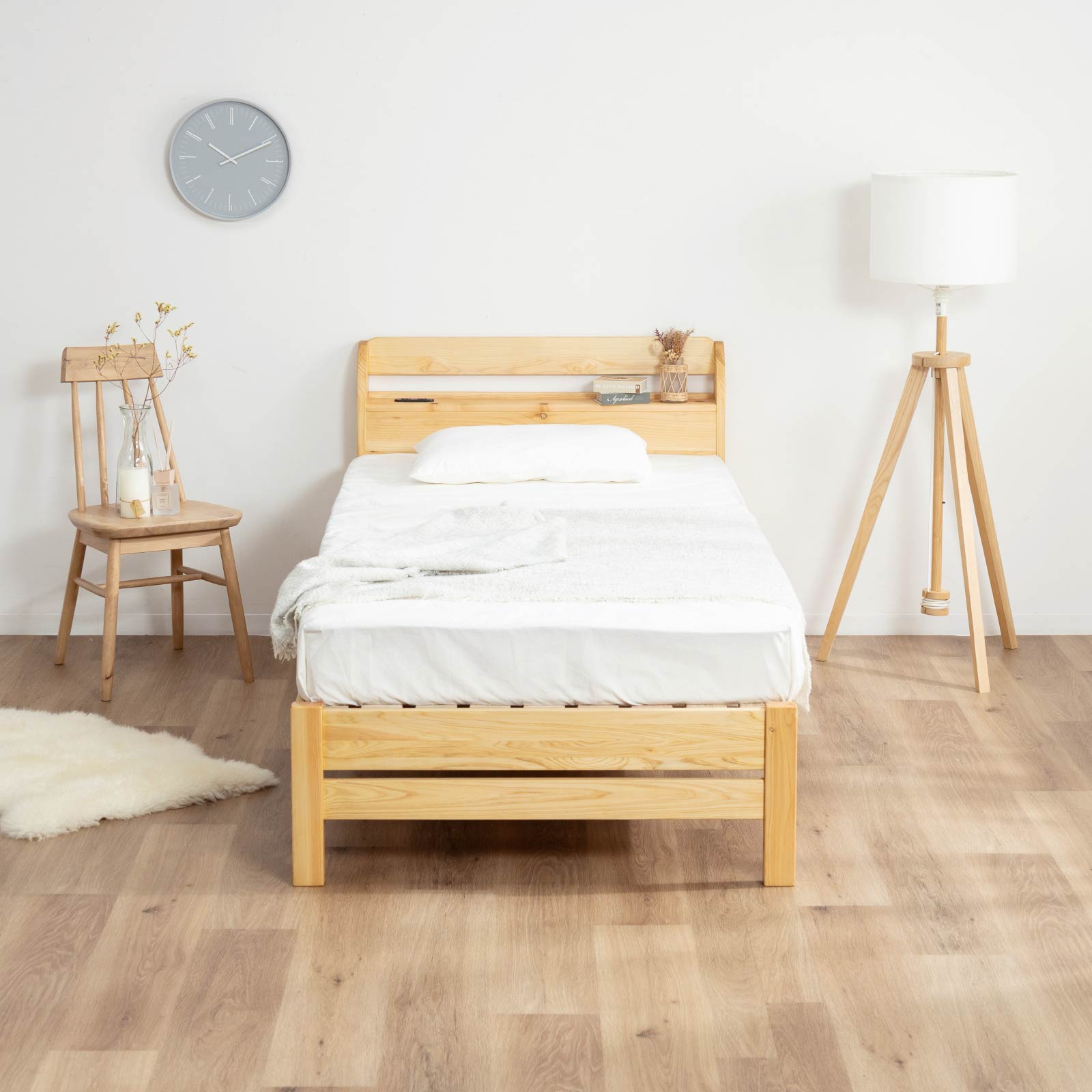 [S/SD/D] ムーラ | ヒノキ ベッドフレーム すのこベッド 宮棚 ひのき無垢材 シングル セミダブル ダブル ベッド