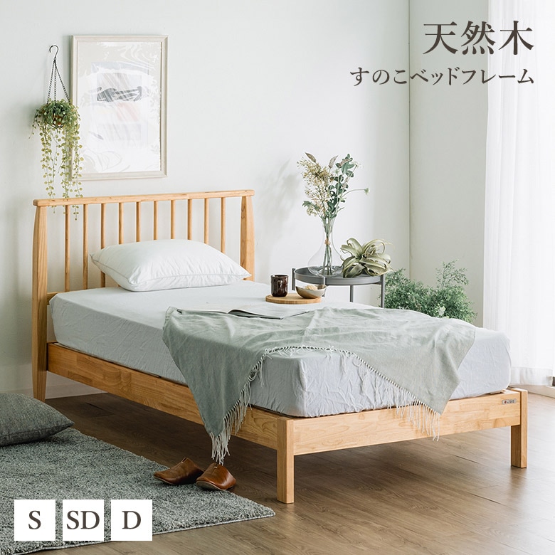 天然木 すのこベッドフレーム スノコベッド シングル/セミダブル/ダブル ラバーウッド 縦格子 シンプル 北欧 お掃除ロボッ...