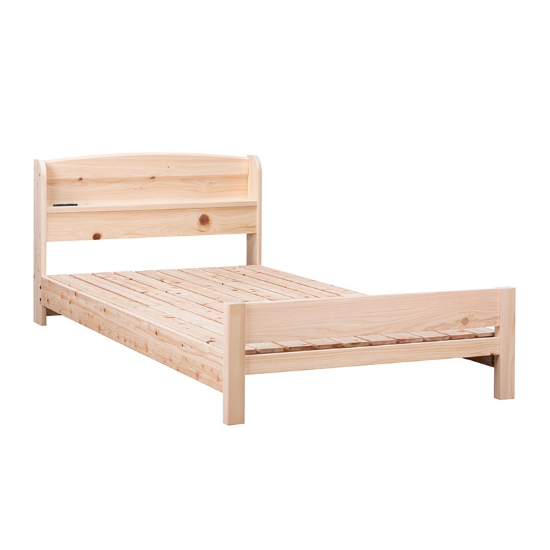 畳ベッド スリム棚 シングル/セミダブル 手すりオプション コンセント付き 宮付き 高さ2段階 ローベッド タモ突板 ナチュラル ...