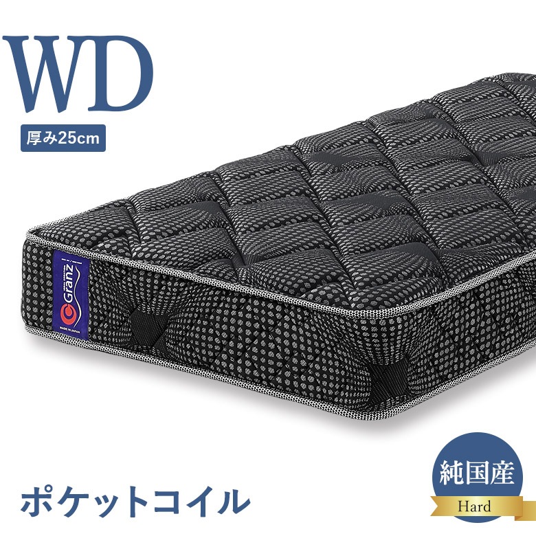 ポケットコイルマットレス ワイドダブルサイズ ハードタイプ 交互配列 25cm厚 エッジサポート 硬め 硬い 日本製 グランツ ...