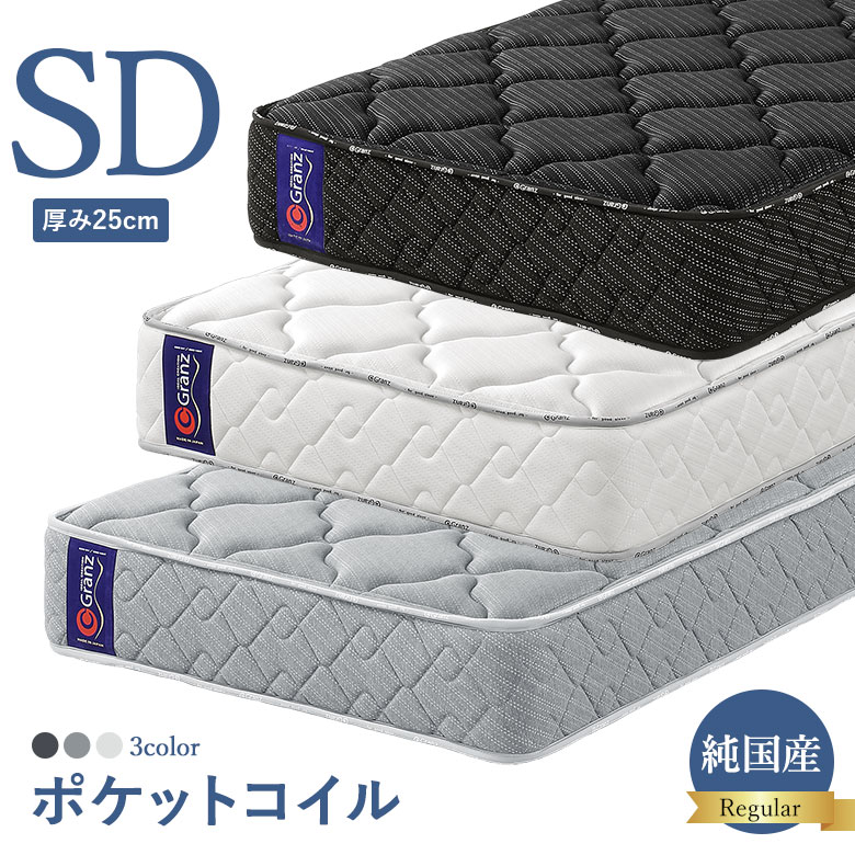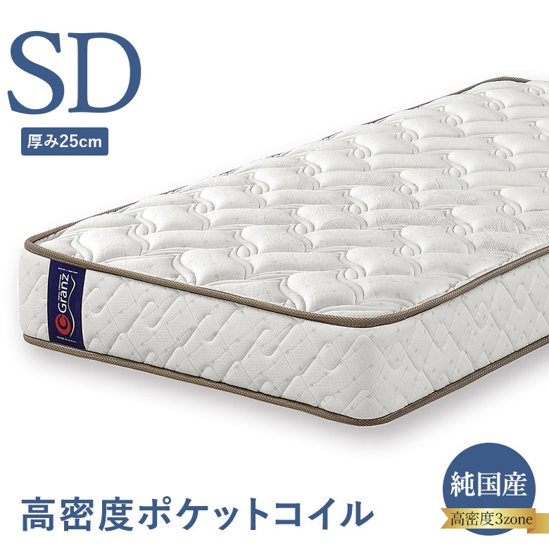 ポケットコイルマットレス セミダブルサイズ 3ゾーン構造 並行配列 25cm厚 エッジサポート 日本製 グランツ Granz セ...