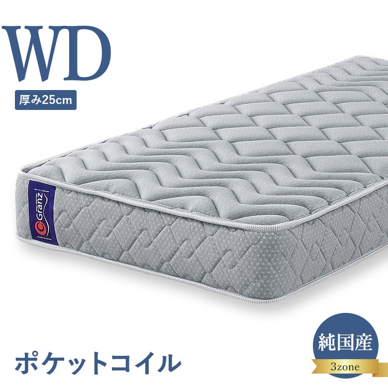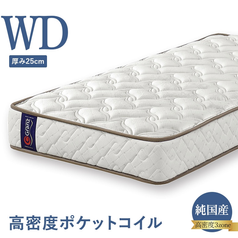 ポケットコイルマットレス ワイドダブルサイズ 3ゾーン構造 並行配列 25cm厚 エッジサポート 日本製 グランツ Granz ...