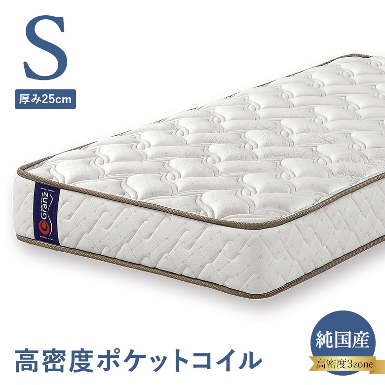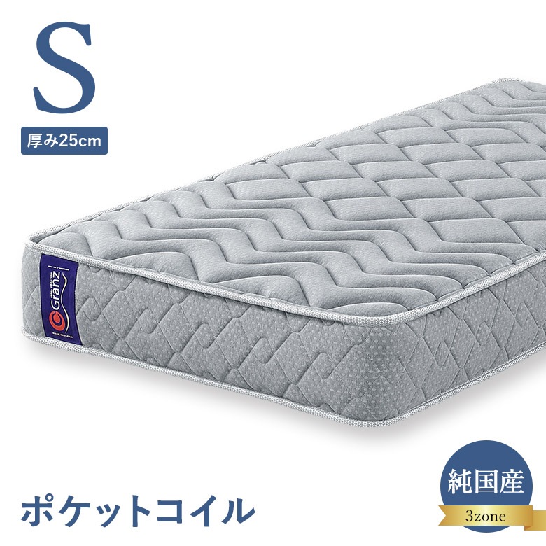 ポケットコイルマットレス シングルサイズ 3ゾーン構造 並行配列 25cm厚 エッジサポート 日本製 グランツ Granz シン...