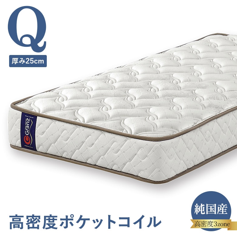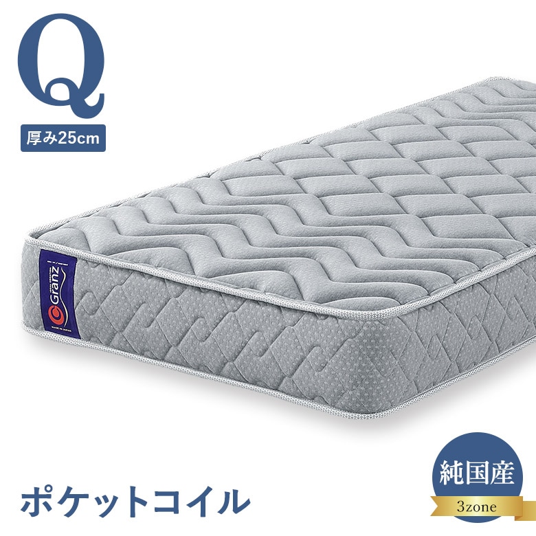 ポケットコイルマットレス ダブルサイズ 3ゾーン構造 並行配列 25cm厚 エッジサポート 日本製 グランツ Granz ダブル...