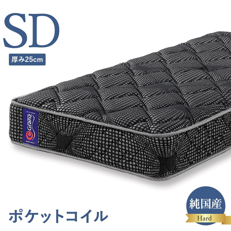 ポケットコイルマットレス セミダブルサイズ ハードタイプ 交互配列 25cm厚 エッジサポート 硬め 硬い 日本製 グランツ G...