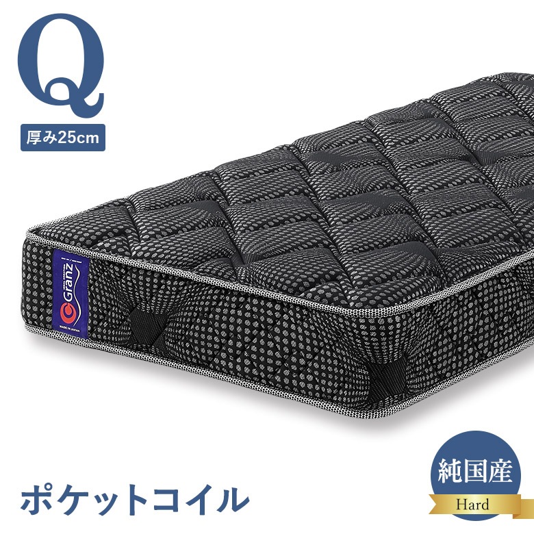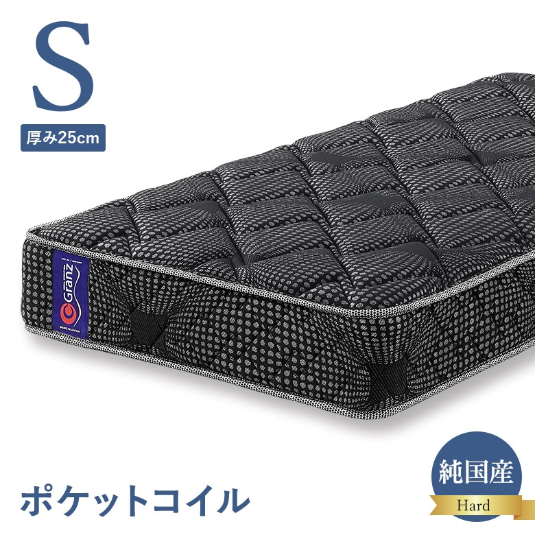 ポケットコイルマットレス シングルサイズ ハードタイプ 交互配列 25cm厚 エッジサポート 硬め 硬い 日本製 グランツ Gr...