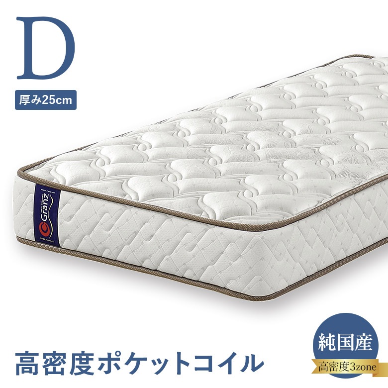 ポケットコイルマットレス ダブルサイズ [レギュラータイプ] 並行配列 25cm厚 エッジサポート D 日本製 グランツ Gran...