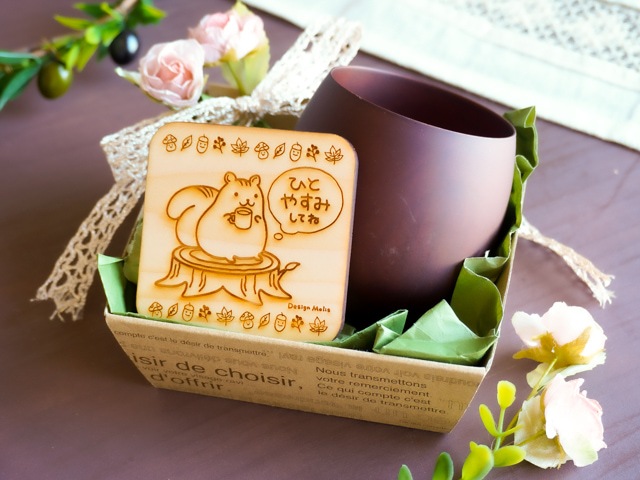 【ラッピング込み】木の湯のみとメッセージコースターギフトセット