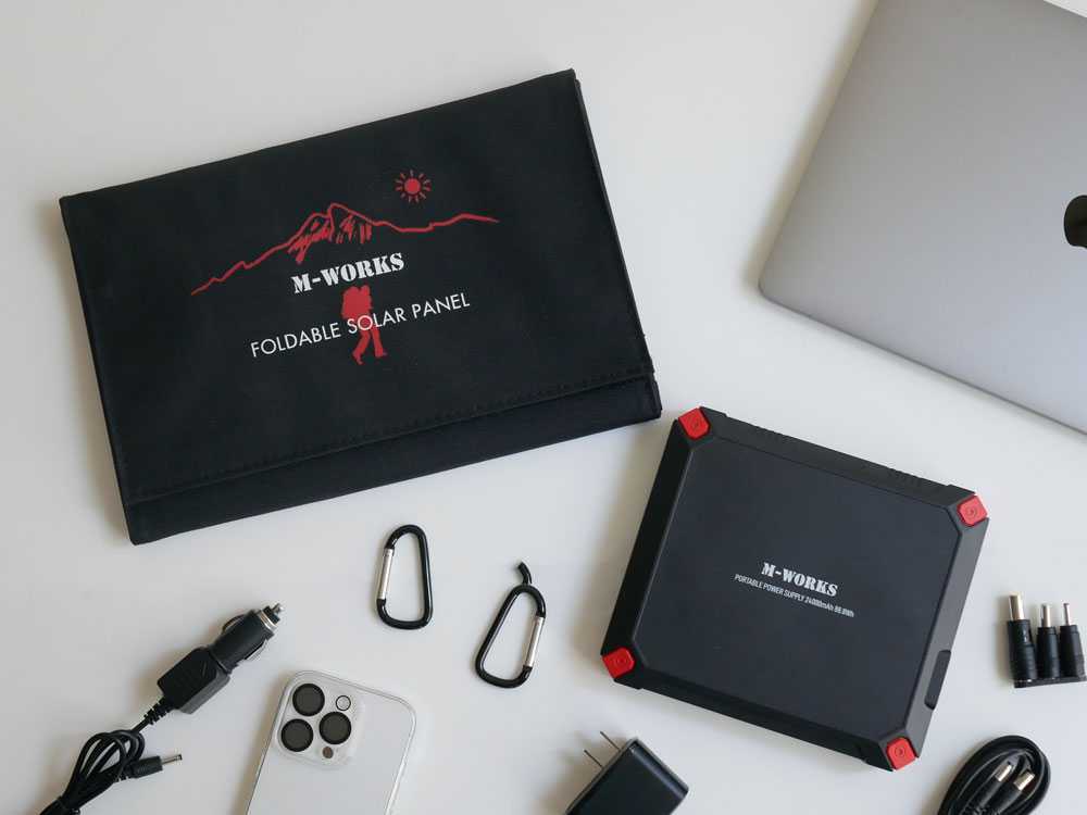 【エムワークス】つながる安心!コンパクトなポータブル電源(ソーラーパネル付き)