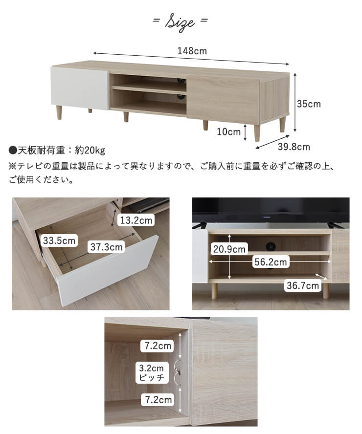 TWICE(トワイス) テレビ台 ローボード(150cm幅)ブラウン TW37-150L-BR