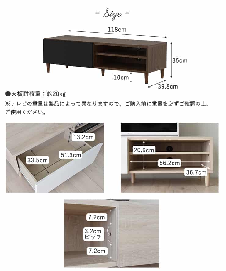 BILY(バイリー) テレビ台 ローボード(100cm幅) WH×NA BY48-100L-WH/NA