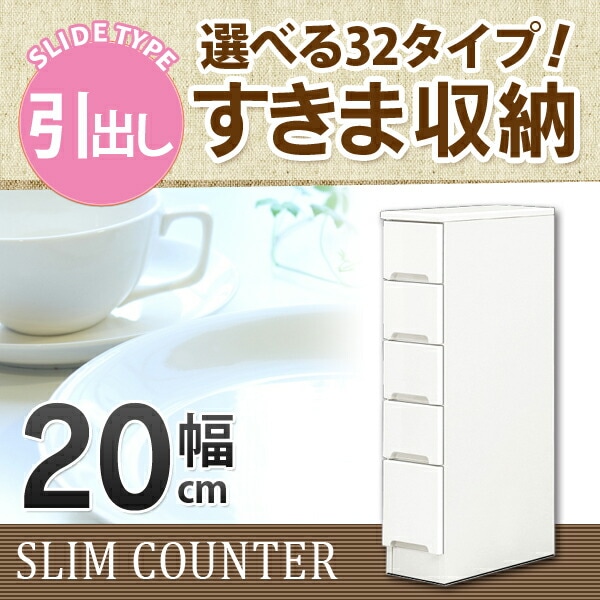 すきま収納 スリムカウンター 幅20cm キッチン収納 ランドリー収納 ホワイト エナメル塗装 引出し 日本製 大川家具