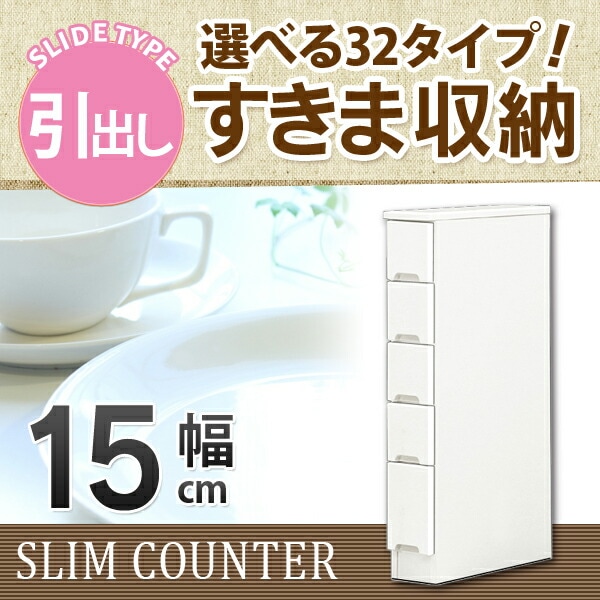 すきま収納 スリムカウンター 幅15cm キッチン収納 ランドリー収納 ホワイト エナメル塗装 引出し 日本製 大川家具