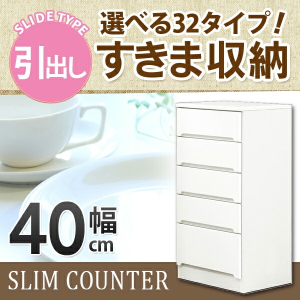 すきま収納 スリムカウンター 幅40cm キッチン収納 ランドリー収納 ホワイト エナメル塗装 引出し 日本製 大川家具