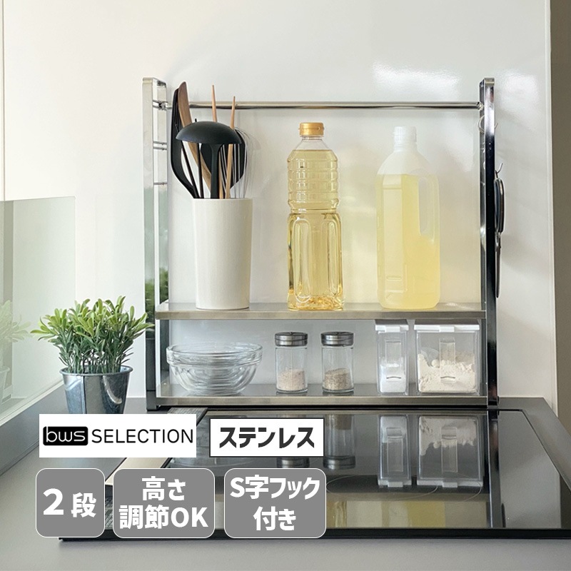 [SB-130070] コンロラック コンロサイドラック 2段 ステンレス 高さ調節 スリム 日本製 収納 キッチンラック スパイ...