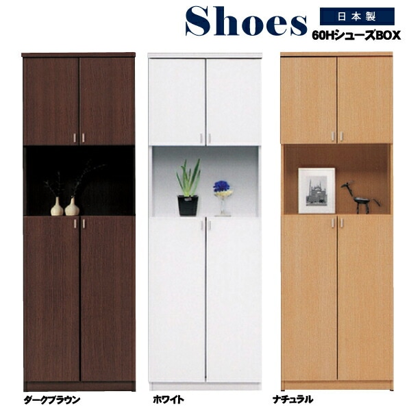 シューズボックス 下駄箱 靴箱 幅60cm ダークブラウン ホワイト ナチュラル 玄関収納 ハイタイプ 日本製