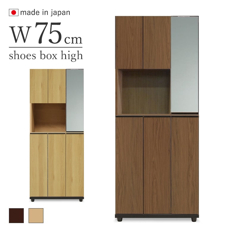 シューズボックス 下駄箱 靴箱 幅75cm ダークブラウン ホワイト ナチュラル 玄関収納 ハイタイプ 日本製
