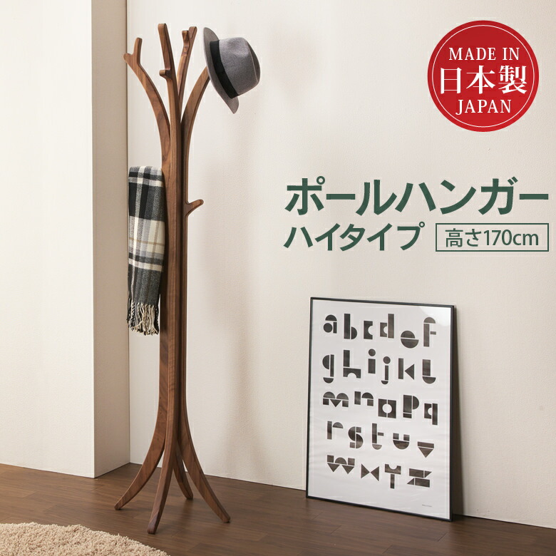 30ポールハンガー ハイタイプ 無垢材 ウォールナット 日本製 国産 【玄関先やお部屋でちょい掛けや飾りにもなるポールハンガー】