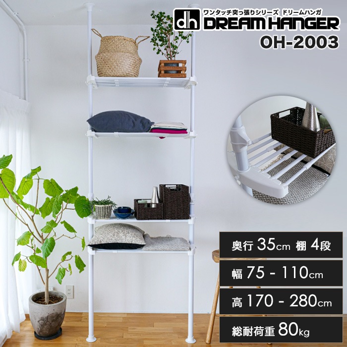 【12%OFF】【アウトレット販売】【ラスト1点】【簡単】ワンタッチ式突っ張りポールハンガーラック棚4段 高さ170-280cm ...
