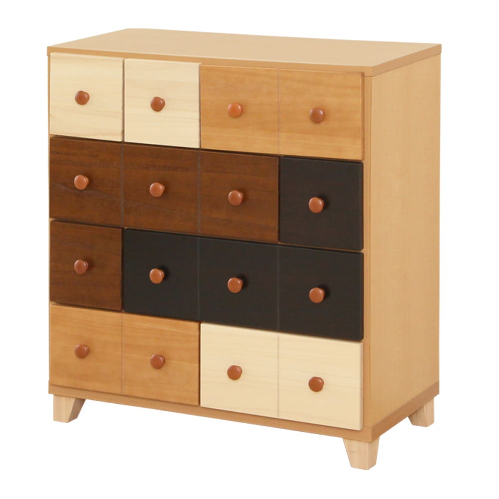北欧、ナチュラルのカラーチェスト(幅75cm、4段チェスト)木製、整理タンス、完成品|wrobe-ローブ- SH-08-WOB-7...