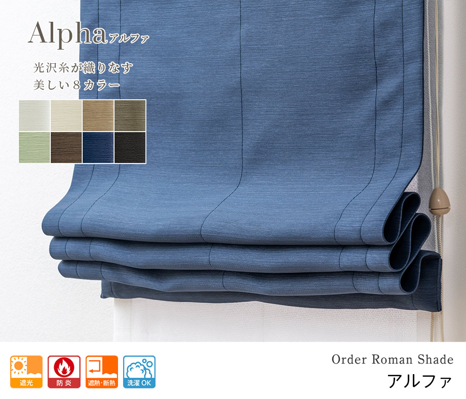 主張しすぎない光沢と繊細な織り感が美しい防炎遮光ダブルシェード「アルファ」防炎タイプ ネイビー(1級遮光)