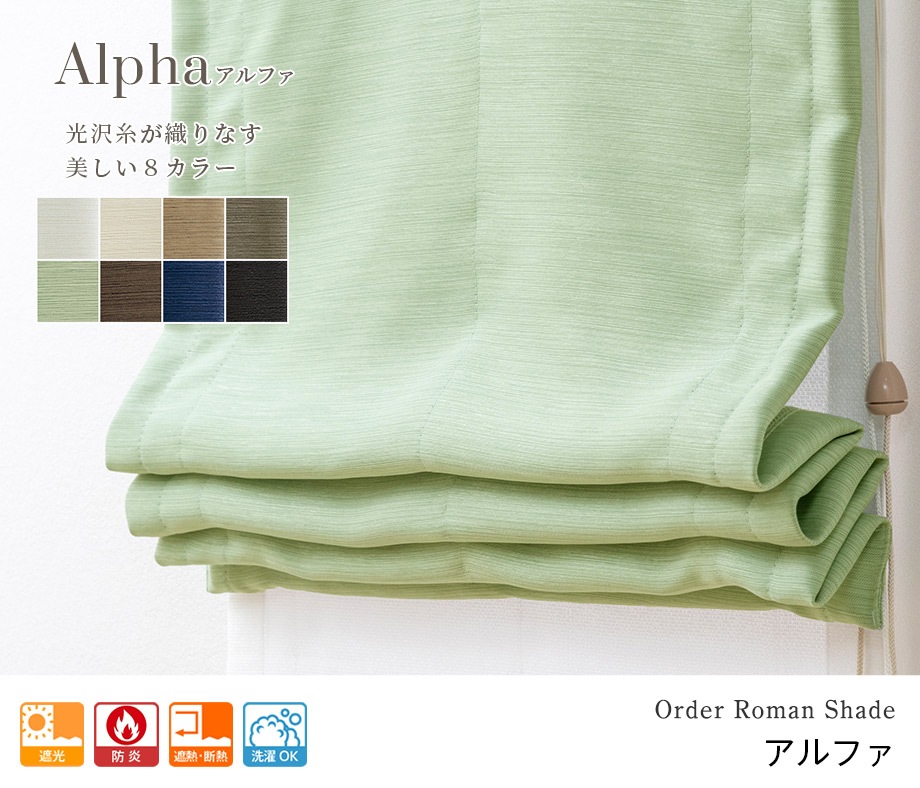 主張しすぎない光沢と繊細な織り感が美しい防炎遮光ダブルシェード「アルファ」防炎タイプ グリーン(1級遮光)